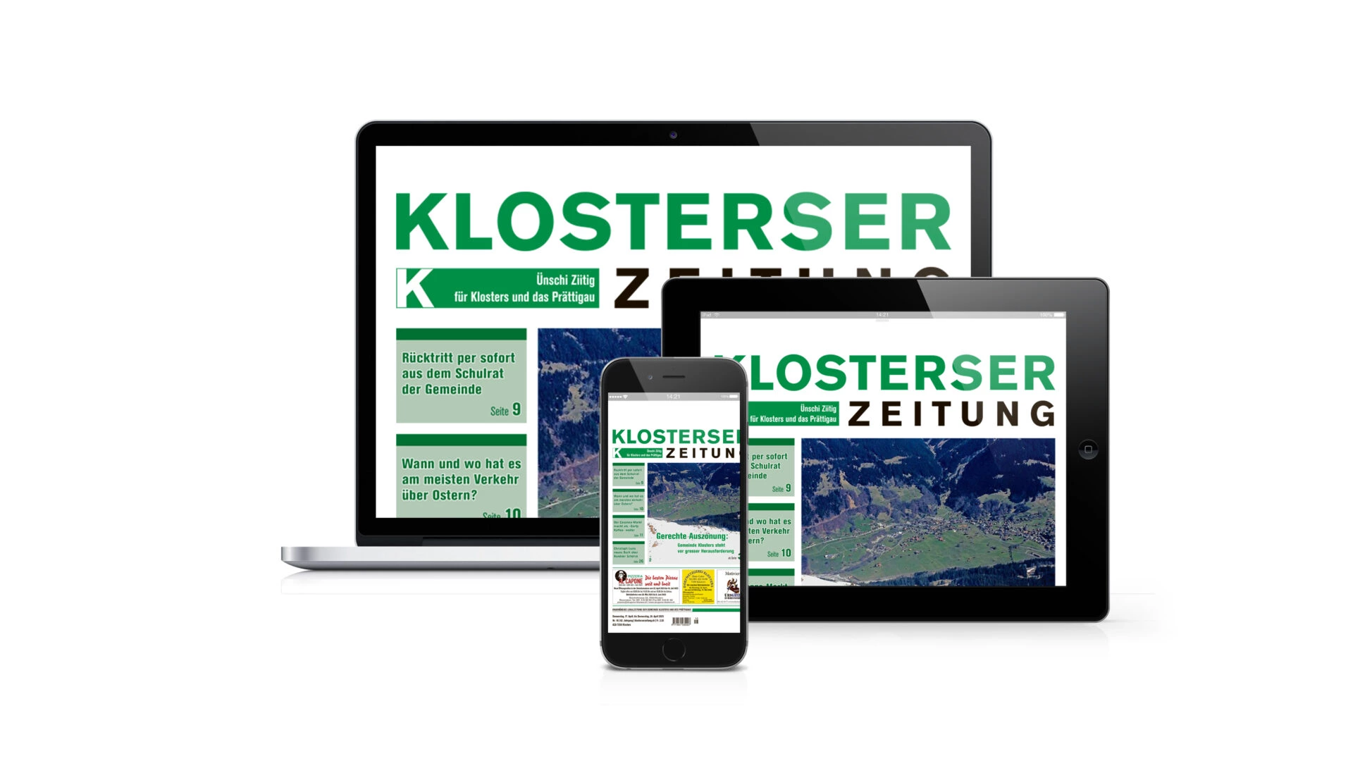 - E-Paper jeden Freitag ab 1:00 Uhr nachtsDie digitale Ausgabe der «Klosterser Zeitung» im Originallayout. Online oder als E-Mail ins Postfach.